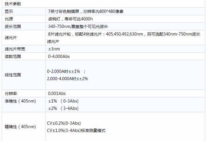吸光度范圍:0~4.000Abs,滿足不同測(cè)量要求