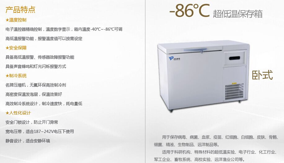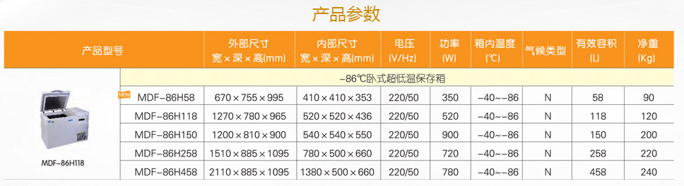 中科都菱-86度系列超低溫保存箱(臥式) MDF-86H58/MDF-86H118/MDF-86H150/MDF-86H258/MDF-86H458