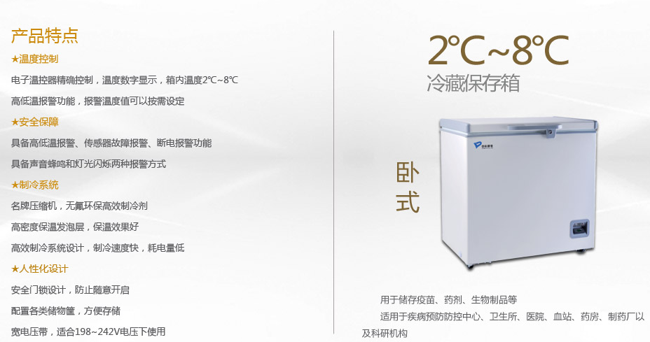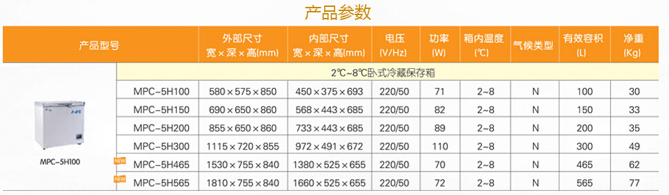 中科都菱2-8度系列藥品冷藏箱,臥式醫(yī)用冷藏箱 MPC-5H100/5H150/5H200/5H300/5H465/5H565