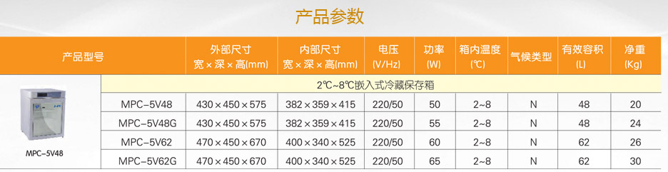 中科都菱2-8℃藥品冷藏箱 (嵌入式) MPC-5V48/5V48G/5V62/5V62G