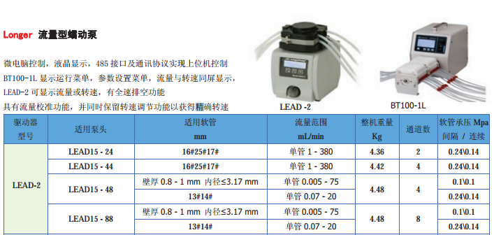 Longer 流量型蠕動(dòng)泵 LEAD-2/ BT100-1L