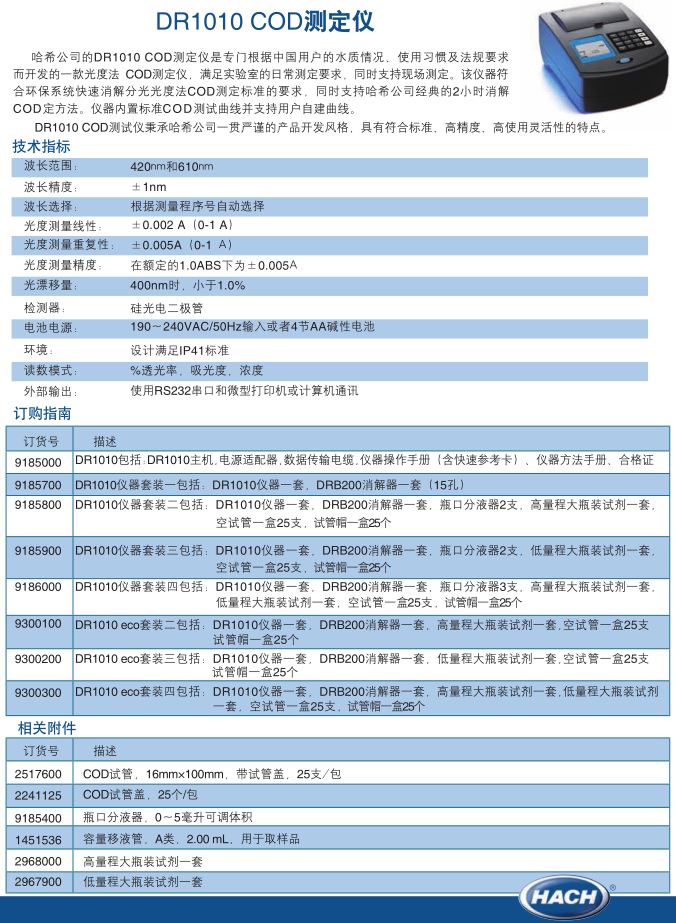 哈希 DR1010 COD測定儀,配套DR200消解器套裝