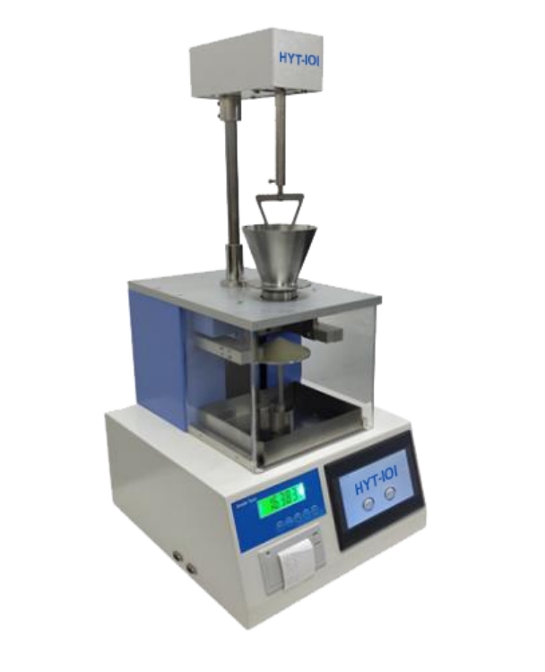 HYT-101型粉體物理特性測試儀一種用 于評價粉體綜合物理特性的測試儀器。機體 采用304不銹鋼材質(zhì),防止器件生銹影響測 試的準(zhǔn)確性。振實密度振動幅度1mm到15mm 可調(diào)(出廠時調(diào)整到3mm) ,振動過程中振 動組件以小角度旋轉(zhuǎn)保證物料均勻,可采 用3種不同容積的量筒(100ml、50ml