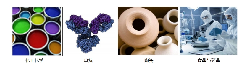 生物制藥、納米乳液、涂料、陶瓷、顏料、填料、化工產(chǎn)品、催化劑、鉆井泥漿、磨料、潤滑劑、煤粉、泥沙、粉 塵、細(xì)胞、細(xì)菌、食品、添加劑、農(nóng)藥、石墨、感光材料、燃料、金屬與非金屬粉末、碳酸鈣、高嶺土、水煤漿及其 他納米超細(xì)顆粒等行業(yè)。