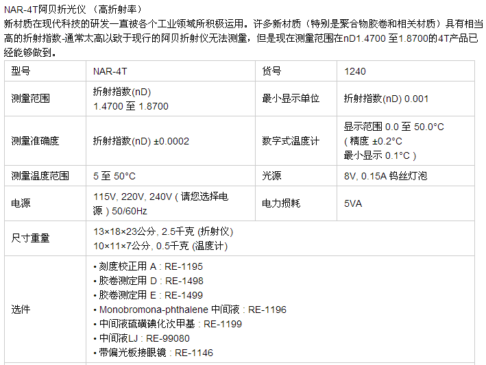 • 日本愛拓阿貝折光儀(高折射率)NAR-4T
