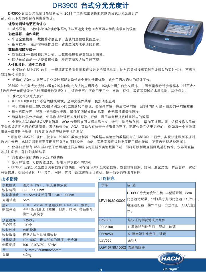 哈希 多參數(shù)水質分析 DR3900 臺式分光光度計