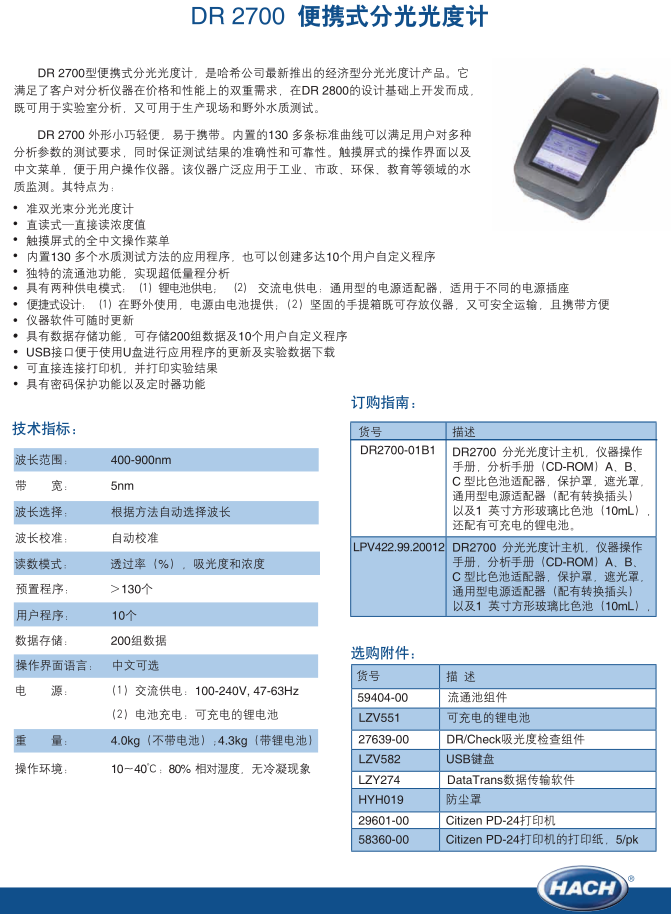 哈希 DR 2700 便攜式分光光度計(jì)