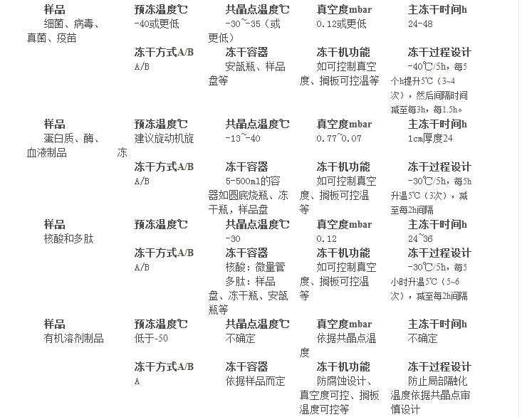 表二 常見樣品凍干方式推薦: